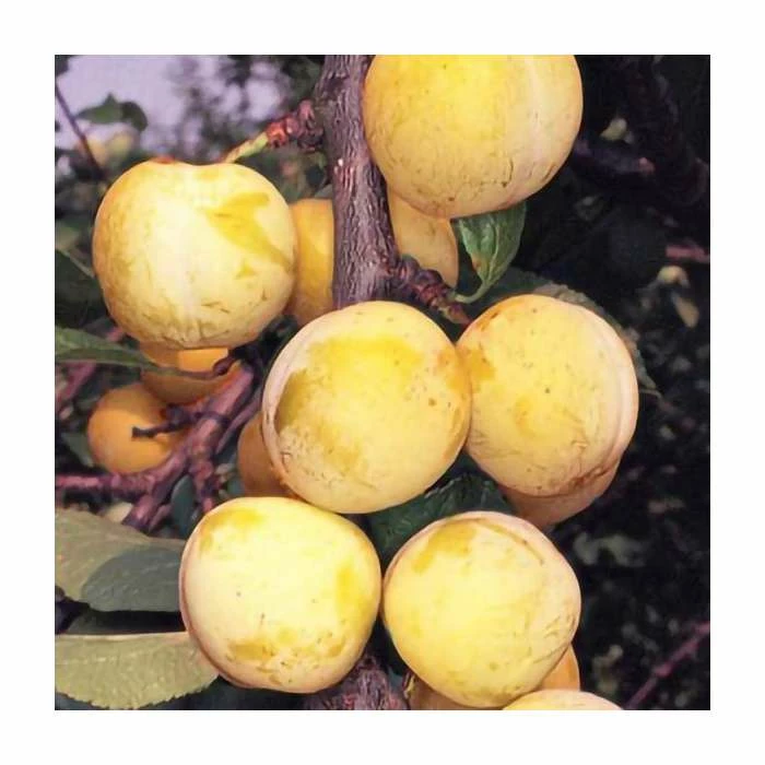 Although better known as ‘Imperial Gage’ in the UK, this cultivar originates in the US where it is known as ‘Denniston’s Superb’. It produces reliable and heavy crops of rounded, yellow-green fruit, which are sweet and juicy. Suitable for puddings, cooked through, but moreoften eaten fresh off the tree, these plums will add an extra element to your garden.