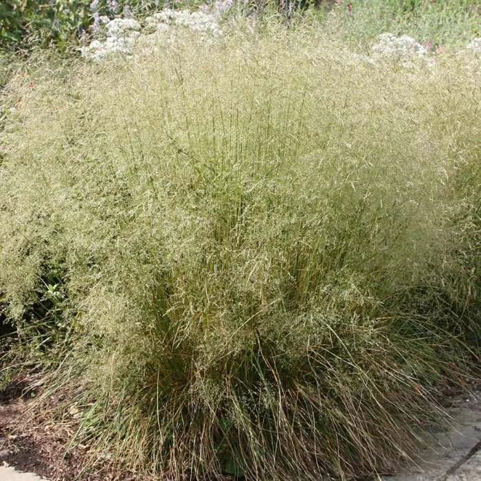 Good in sun or shade. Position: full sun or partial shade Soil: dry to moist, neutral to acid soil Rate of growth: average to fast-growing Flowering period: June to August Hardiness: fully hardy Forming evergreen tussocks of stiff, mid-green leaves, which are topped by open, arching sprays of silvery-purple spikelets throughout the summer. This marvellous grass will flourish in sun or light shade in reliably moist soils, although it will become tolerant of drought once it has had a chance to become established. Often top of the designers wishlists, they are easy to grow and flowerheads can be cut and added to dried arrngements. Garden care: Remove the faded flower-heads in late winter before new growth appears. If the foliage has also started to look tatty at that time of the year, then this too can be cut back hard. In warm areas the plant has a tendency to self-seed freely. Where this is the case remove unwanted seedlings as part of routine border maintenance.