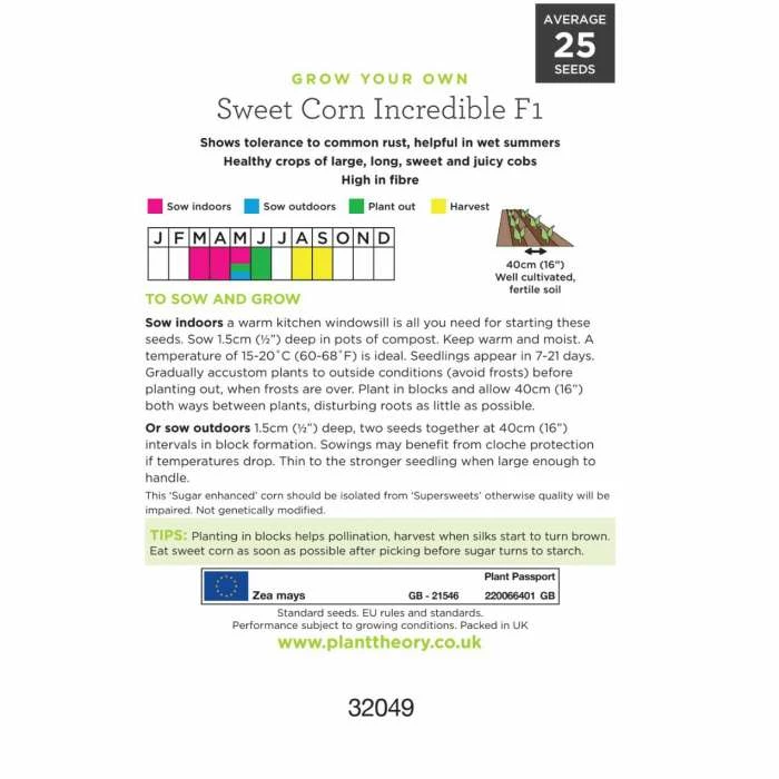 ‘Incredible’ F1 Sweetcorn Seeds | By Plant Theory