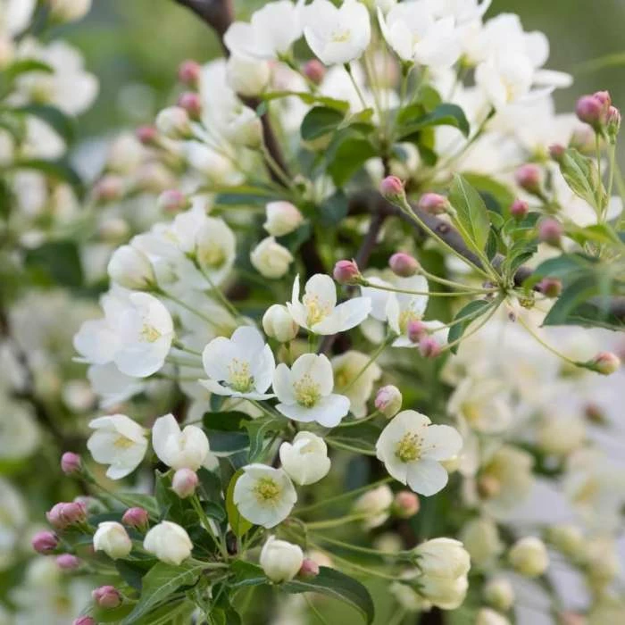 A magnificent small tree. Position: full sun or partial shade Soil: fertile, well-drained soil Rate of growth: average Flowering period: May Hardiness: fully hardy A very pretty crab apple, that makes an excellent addition to smaller gardens. In spring, it produces a mass of ivory-white flowers, just as the fresh green leaves start to appear. From late summer, these are followed by dark red fruits, which remain until well into winter. Perfect for a small garden or large pot. Garden care: When planting incorporate lots of well-rotted garden compost in the planting hole and stake firmly. Remove dead, diseased and crossing branches while the tree is dormant.