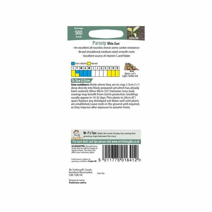 Parsnip “White Gem” Seeds | Mr Fothergill’s
