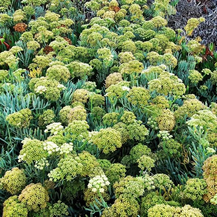 | Hardiness | fully hardy A native, coastal, wild flower perennial, Crithmum maritimum can be found in rocky cliff or seaside shingle locations. A small bushy plant whose succulent, grey-green foliage, triangular in cross-section is edible with an aromatic, salty taste. It bears umbels of yellowish-green flowers in summer. Requires saline conditions to do well and plants are best grown in coastal locations, but rock samphire will tolerate a very well-drained poor soil further inland. Harvest only young growth using scissors once the plants have become well developed. |